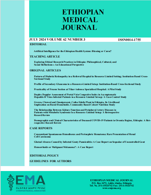 Citation : Alemu AM, Gebrekidan GT Profile of Secondary Glaucoma in a Resource-Limited Setup: Institution-Based Cross-Sectional Study Ethiop Med J 62 (3) 173 - 179